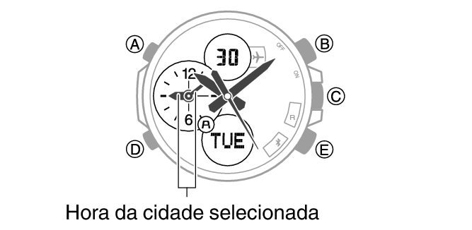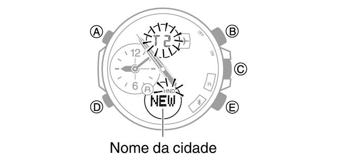 Os pequenos ponteiros de horas e minutos indicarão a hora atual na cidade selecionada.