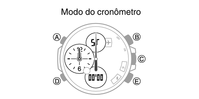 O cronômetro pode medir o tempo transcorrido até 23 horas, 59 minutos e 59 segundos.