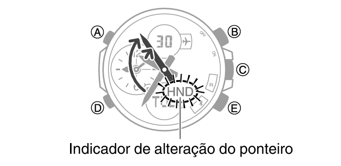 - O indicador de alteração do ponteiro acenderá enquanto os ponteiros são movidos.