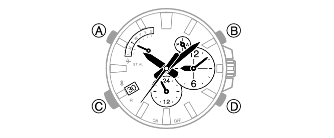 Você saberá em qual modo o relógio está atualmente verificando a posição no ponteiro de modo.