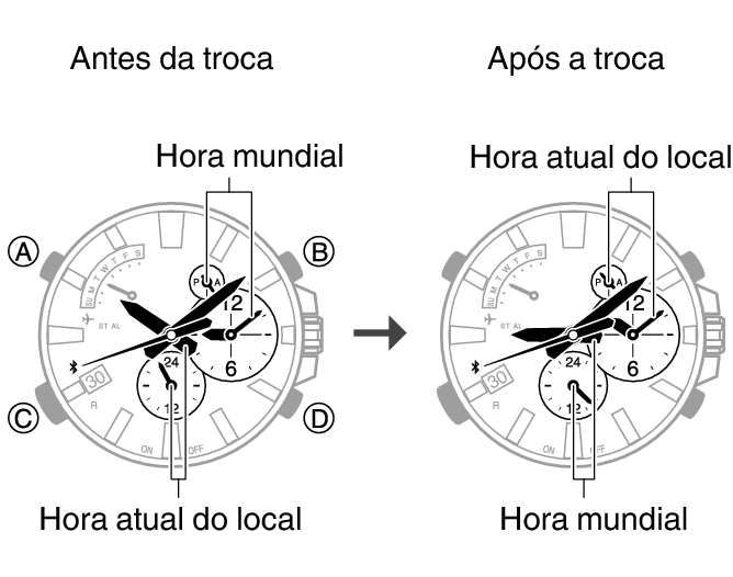 Troca entre a hora atual do seu local e a hora mundial