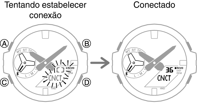Quando houver uma conexão estabelecida entre o relógio e o telefone, [CNCT] parará de piscar.