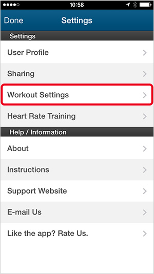 Коснитесь [Workout Settings] (Параметры тренировки).