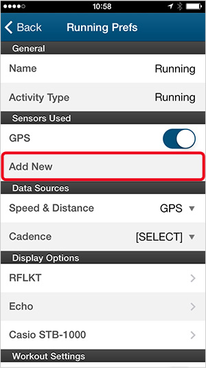 Коснитесь [Add New] (Добавить новый) в пункте [Sensors Used] (Используемые датчики).