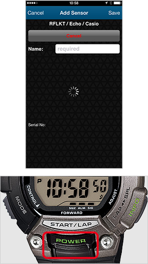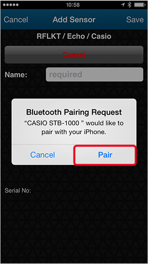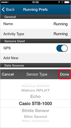 Чтобы выбрать тип датчика, коснитесь [CASIO STB-1000], а затем [Done] (Готово).