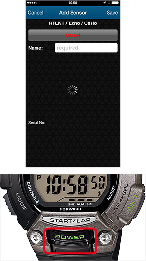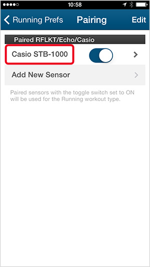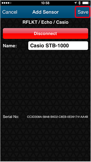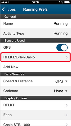 Коснитесь поля [RFLKT/Echo/Casio] в пункте [Sensors Used] (Используемые датчики).