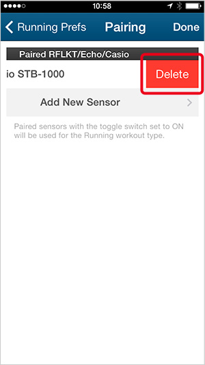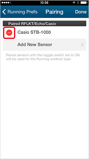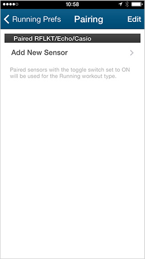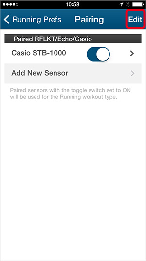 Коснитесь поля [RFLKT/Echo/Casio], расположенного под кнопкой [Sensors Used] (Используемые датчики).