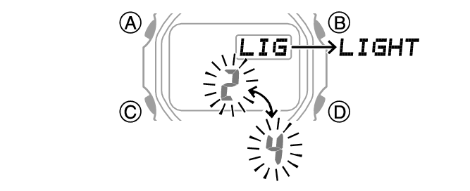 4.Нажмите кнопку (D) для переключения между двумя настройками времени подсветки.