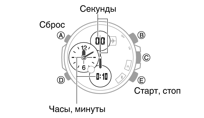 3.Для возврата в режим «Часы» дважды нажмите кнопку (D).