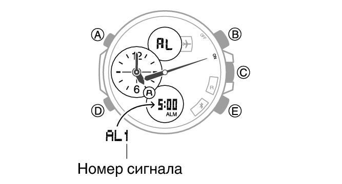 1.Нажмите (E), чтобы прокрутить список будильников, пока не отобразится номер сигнала, который нужно настроить.