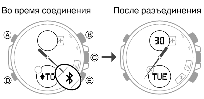 После установки соединения между часами и телефоном секундная стрелка будет указывать на