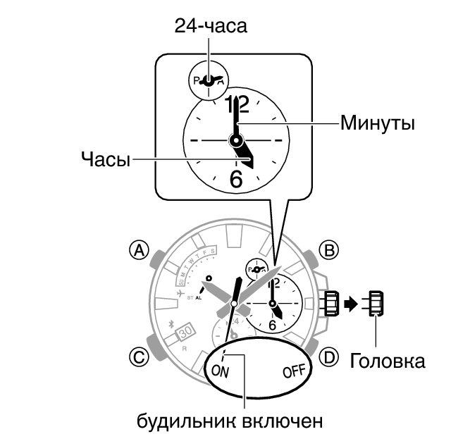2.Для изменения настроек будильника покрутите заводную головку.