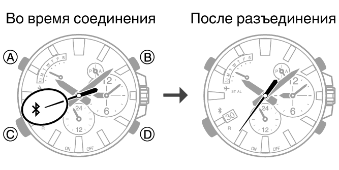 В результате этого действия секундная стрелка совершит один оборот, и информация о сопряжении будет удалена.