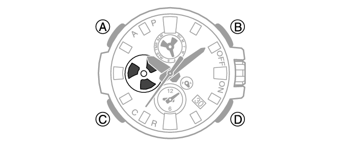 Функции кнопок не работают (за исключением кнопки перехода по режимам), если происходит быстрая прокрутка стрелок после изменения настройки часов и т. д. Прежде чем нажимать на кнопки, дождитесь, пока стрелки прекратят движение.