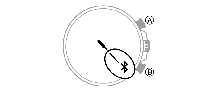 Нажмите и удерживайте кнопку (B) не менее двух секунд, пока секундная стрелка дважды не передвинется к [R]. -