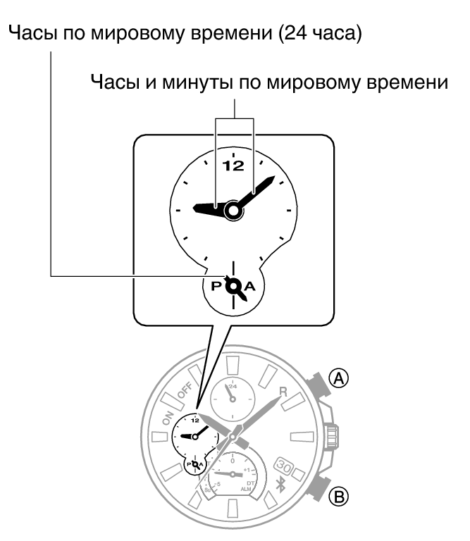 - По положению малой часовой стрелки (24 часа) можно определить, относится ли установленное мировое время к периоду «до полудня» или «после полудня».
