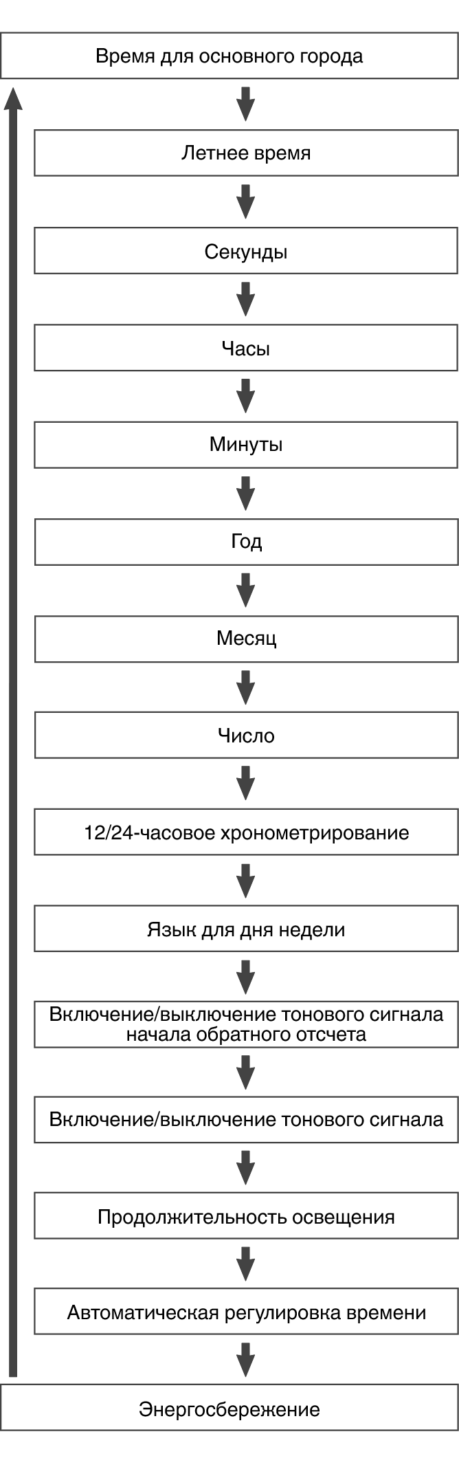 Для летнего времени по умолчанию для всех городов (часовых поясов) установлено значение [AUTO]. Во многих случаях параметр [AUTO] позволяет использовать часы без переключения между летним и стандартным временем.