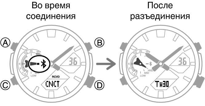 Если часы подключены к телефону, нажмите любую кнопку для отключения. -