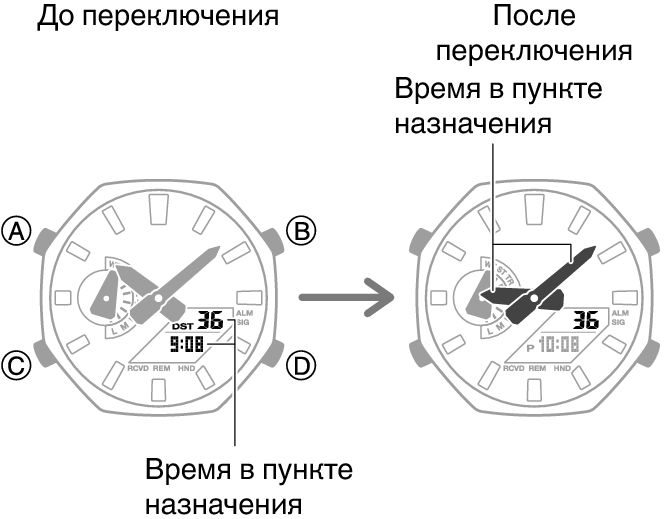 Переключитесь с часового пояса точки отправления на часовой пояс пункта назначения.