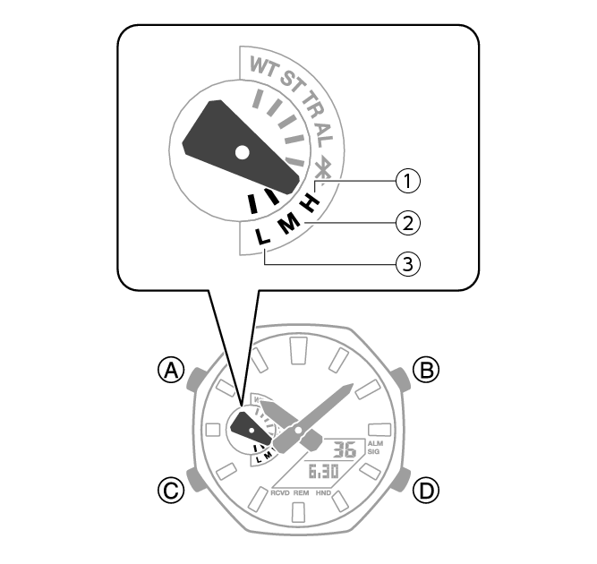 Если оставить часы под воздействием света при нулевом уровне заряда аккумулятора, начнет мигать индикатор [CHG]. Оставьте часы под воздействием света, чтобы зарядить их, пока снова не появится экран режима «Часы».