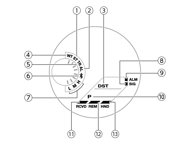 В режиме «мирового времени» стрелка режима указывает на символы [WT].