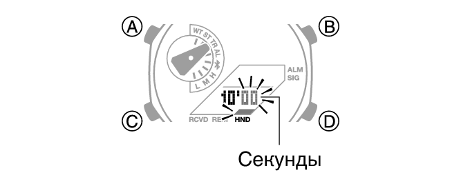 С помощью кнопок (B) и (D) измените значение секунд.