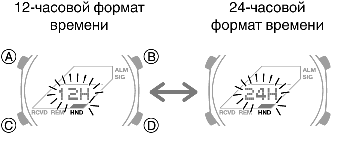 Переключение между 12-часовым и 24-часовым форматом