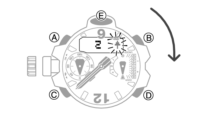 Если в течение двух минут после вытягивания заводной головки из исходного положения пользователь не производит никаких действий, функции, которыми можно управлять при помощи заводной головки, автоматически отключаются. В этом случае следует вернуть заводную головку в исходное положение, а затем снова вытянуть ее.