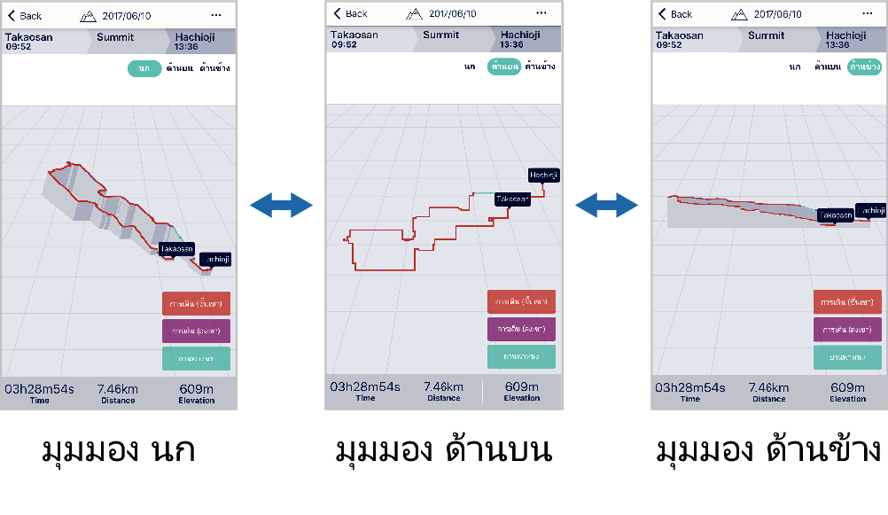 จะแสดงบันทึกกิจกรรมจากมุมด้านข้างในมุมมองภาพจากมุมสูง