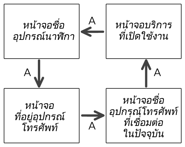 - กดปุ่ม D เพื่อแสดงหน้าจอชื่ออุปกรณ์โทรศัพท์