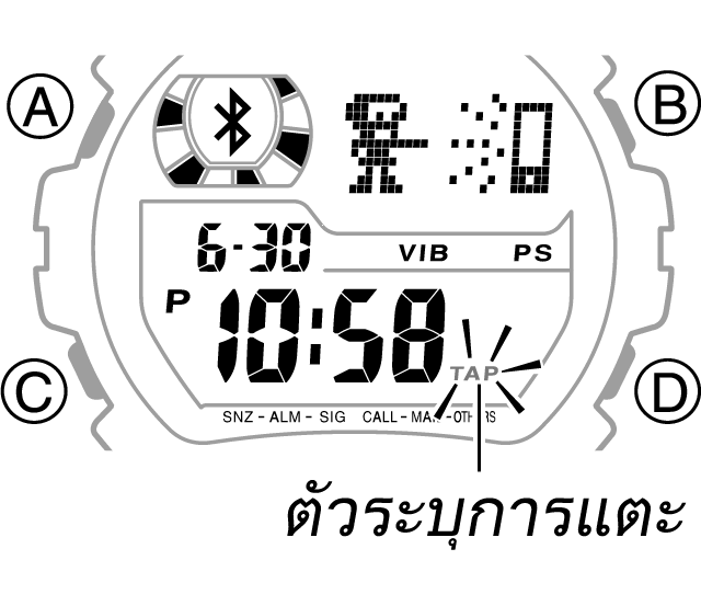- ในโหมดบอกเวลาปกติ กดปุ่ม D ค้างไว้ประมาณหนึ่งวินาที