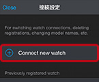 ที่มุมบนขวาของหน้าจอโทรศัพท์ แล้วแตะ [Connect new watch] (เชื่อมต่อนาฬิกาใหม่)3เลือกชื่อรุ่นนาฬิกาที่คุณต้องการจับคู่ด้วย แล้วแตะ [Next] (ถัดไป)