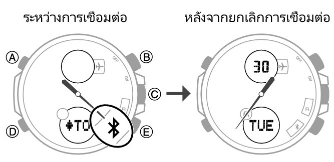 หากนาฬิกาเชื่อมต่ออยู่กับโทรศัพท์ ให้กด (C) เพื่อยกเลิกการเชื่อมต่อ -