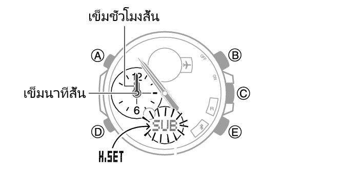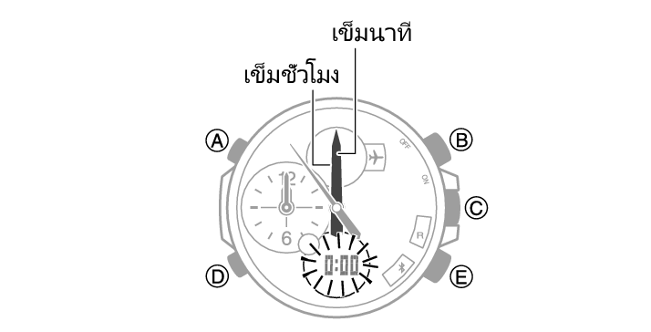 6.ถ้าเข็มวินาทีไม่ได้อยู่ที่ตำแหน่ง 12 นาฬิกา ให้ใช้ (B) และ (E) เพื่อเลื่อนเข็มไปที่ตำแหน่งดังกล่าว
