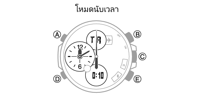 ทำตามขั้นตอนนี้ในโหมดนับเวลา ใช้ (D) เพื่อไปยังโหมดนับเวลา