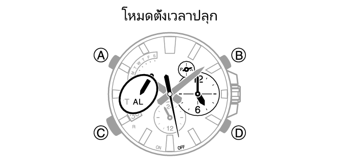 เวลาปลุก นาฬิกาจะส่งเสียงเมื่อถึงเวลาแจ้งเตือน การเตรียมพร้อม ทำตามขั้นตอนนี้ในโหมดตั้งเวลาปลุก ใช้ ใช้ (A) เพื่อไปยังโหมดตั้งเวลาปลุก การไปยังโหมดต่างๆ
