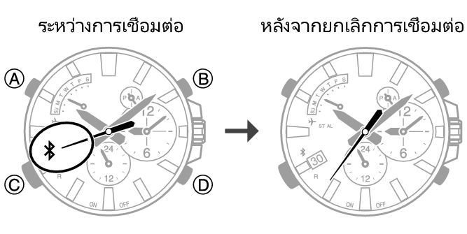 หากนาฬิกาเชื่อมต่ออยู่กับโทรศัพท์ ให้กด (C) เพื่อยกเลิกการเชื่อมต่อ -