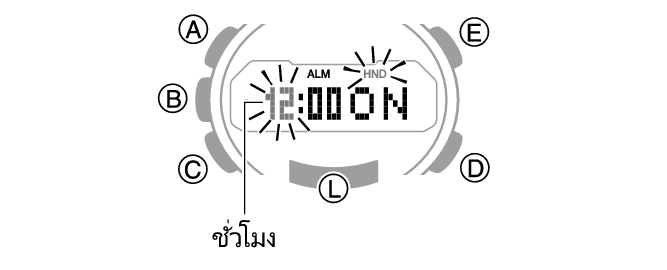 3.ใช้ (D) และ (E) เพื่อเปลี่ยนการตั้งค่าชั่วโมง