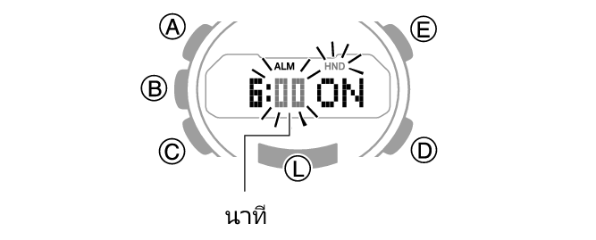 5.ใช้ (D) และ (E) เพื่อเปลี่ยนการตั้งค่านาที