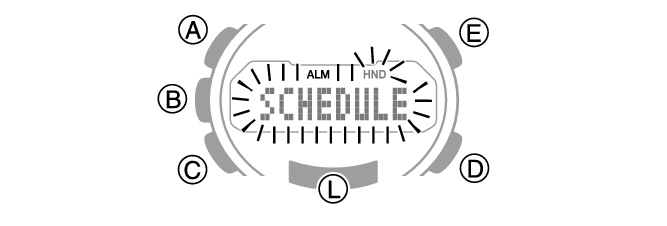 - หากคุณเลือก [SCHEDULE] เป็นประเภทการปลุก คุณจะต้องกด (A) จากนั้นดำเนินการตามที่อธิบายด้านล่างเพื่อระบุวันที่นาฬิกาปลุก