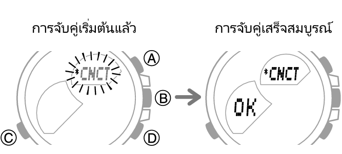 หากการจับคู่ล้มเหลวด้วยเหตุผลบางประการ [ERR] จะปรากฏบนหน้าจอชั่วขณะ จากนั้นนาฬิกาจะกลับสู่โหมดบอกเวลาปกติ ให้ดำเนินการขั้นตอนการจับคู่อีกครั้งตั้งแต่เริ่มต้น