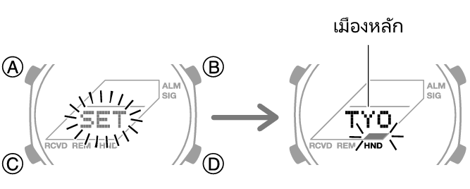 กด (A) ค้างไว้เป็นเวลาอย่างน้อยสองวินาทีจนกระทั่งชื่อของเมืองหลักที่เลือกไว้แสดงขึ้น