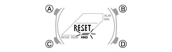 กด (B) ค้างไว้อย่างน้อย 7 วินาที การดำเนินการนี้จะทำให้สัญญาณ [ALL] และ [RESET] สลับไปมาบนหน้าจอ ปล่อยปุ่มเมื่อมีเพียง [RESET] ปรากฏขึ้นเท่านั้น