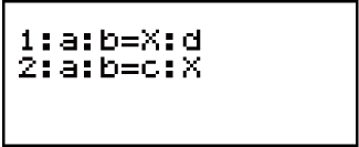 RATIO Mode, a : b = X : d (veya a : b = c : X) oran ifadesinde, a, b, c ve d değerlerinin bilindiği durumda X'in değerine karar vermenize izin verir. Aşağıdaki adımlar RATIO'yu kullanmanın genel yordamını göstermektedir.