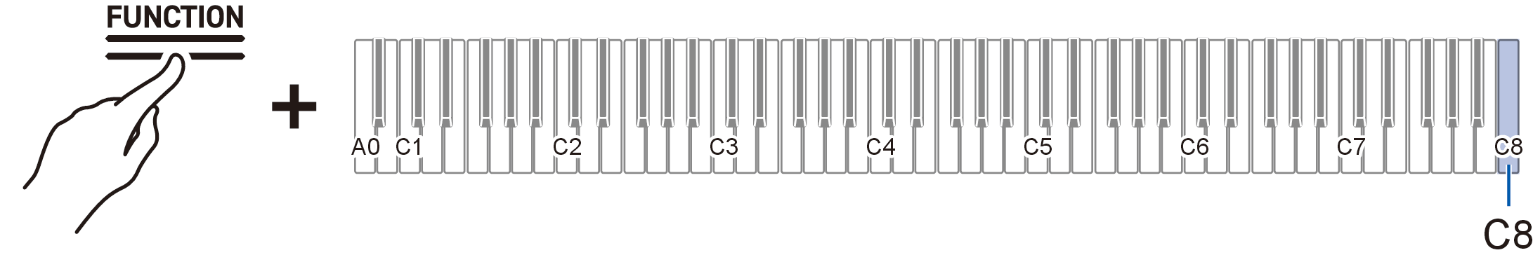 Dijital Piyano açılana ve dokunmatik düğmeler yanıp sönmeye başlayana kadar C8 tuşunu bırakmayın.