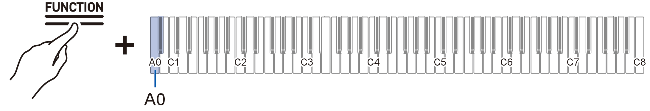 “GRAND PIANO” düğmesini basılı tutarken, E3 ila F5 arasındaki klavye tuşlarından birine basın (Ton Seçimi).