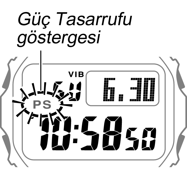 Güç Tasarrufu saat bir saat boyunca hareket ettirilmediğinde veya herhangi bir düğmeye basılmadığında başlatılacaktır. Aşağıda, saat Güç Tasarrufu modundayken neler olduğu açıklanmaktadır.