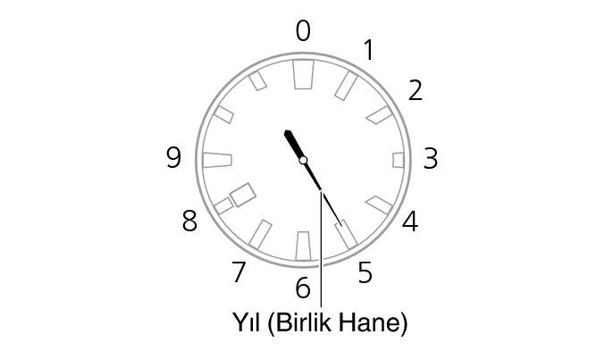 7.Kurma kolunu döndürerek yılın 10’lar basamağını değiştirin.