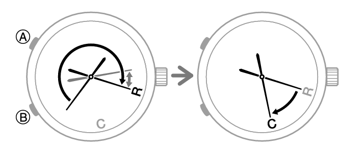 Bir saat ayarı vb. değiştirildikten sonra saat kolları hızlı hareket ederken düğme işlemleri geçersiz kılınır. Düğme işlemleri gerçekleştirmeden önce kolların hareket etmeyi durdurmasını bekleyin.
