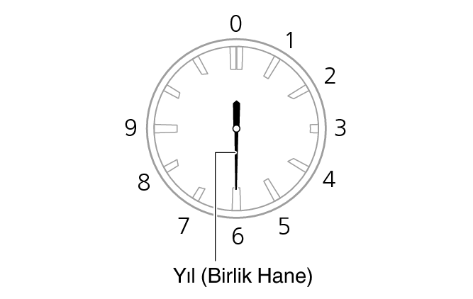 9.Kurma kolunu döndürerek yılın 1’ler basamağını değiştirin.